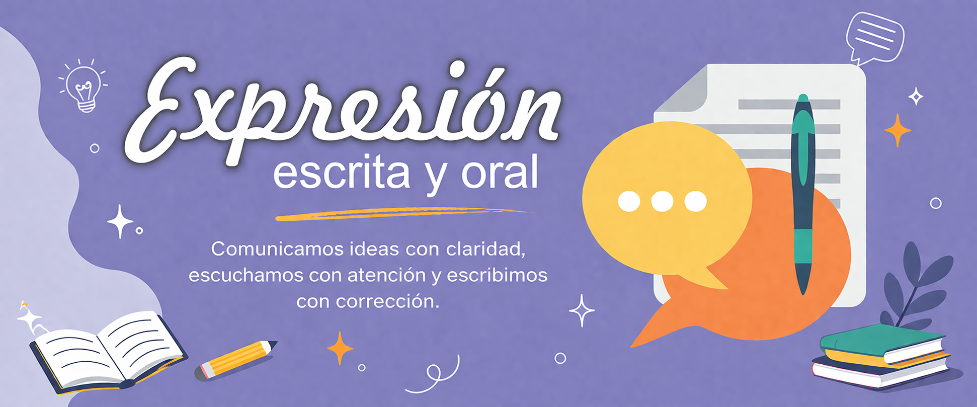 La presente aula virtual aborda la expresión oral y escrita como pilares fundamentales del currículo en el séptimo año de Educación General Básica (EGB). Se destaca la oralidad como una práctica sociocultural compleja que sirve de andamiaje para la construcción del pensamiento y la interacción social eficaz.